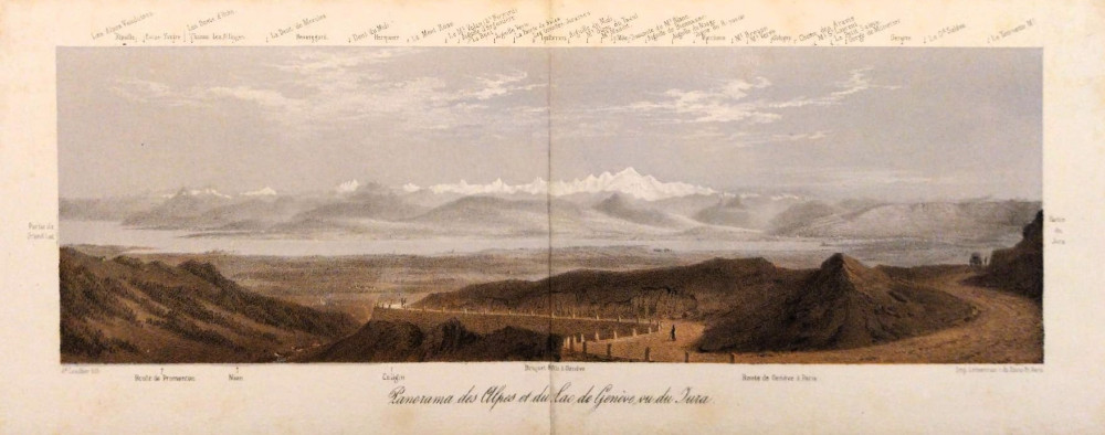 Panorama des Alpes et du lac de Genève vu du Jura. Ginevra, Lemercier, 1860 circa.