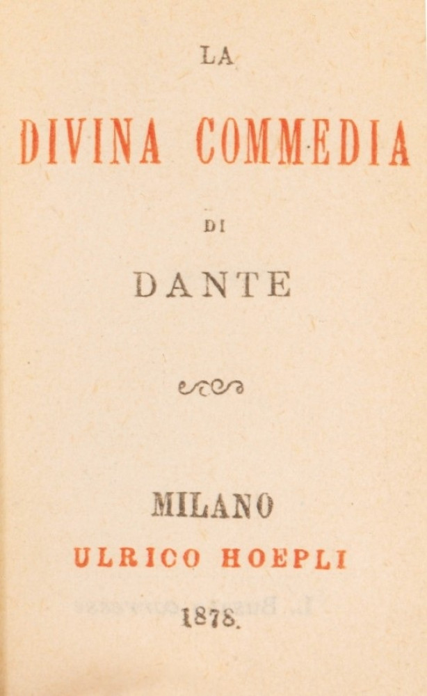 Alighieri, Dante. La Divina Commedia. Milano, Ulrico Hoepli, 1878.