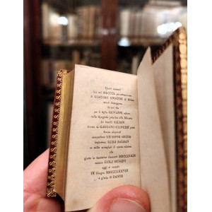In-128° (mm 34x56), 5 cc. non num. inclusi l'occhietto, il ritratto e il frontespizio, 499 pagg. num., 1 pag. non num.