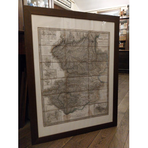 Incisione originale eseguita su rame e acquerellata a mano lungo i confini, applicata su tela a stacchi e suddivisa in 18 riquadri all’epoca (mm 565 x 715).