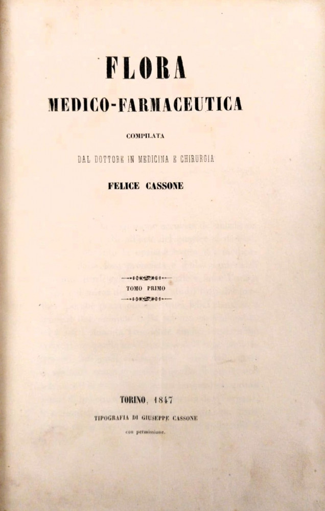 Cassone, Felice. Flora medico-farmaceutica compilata dal dottore in medicina e chirurgia Felice Cassone. Torino, Tipografia di Giuseppe Cassone, 1847-1852.