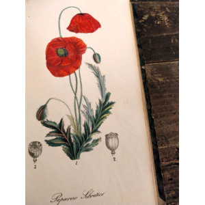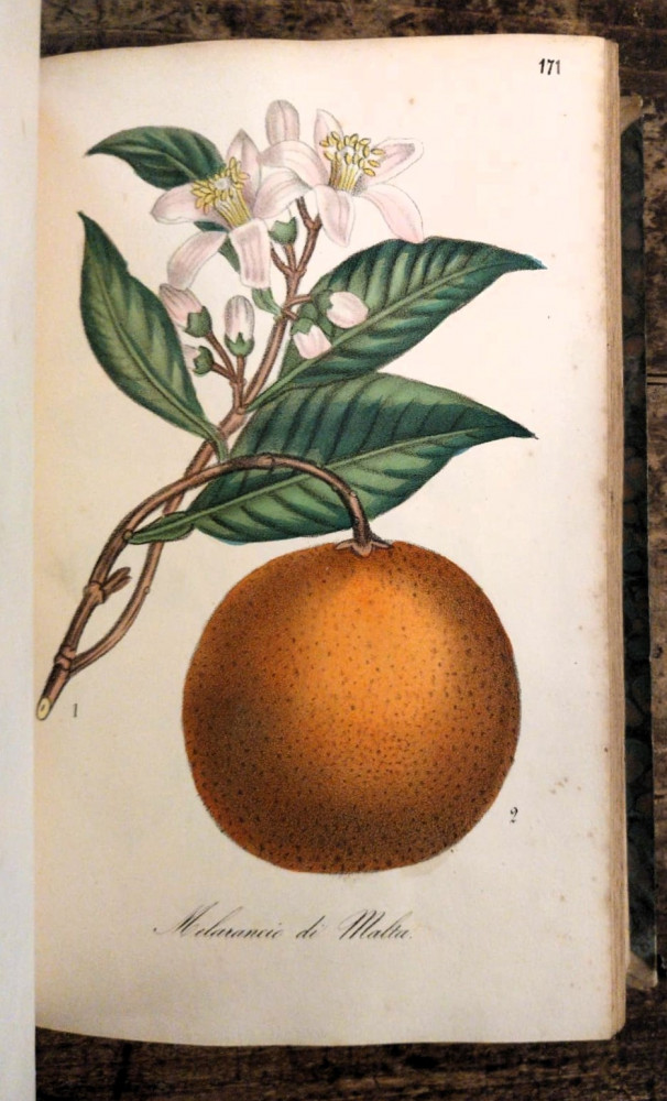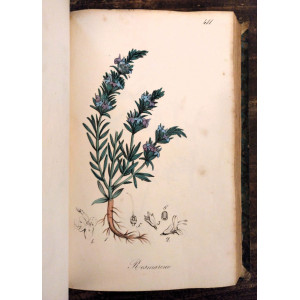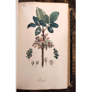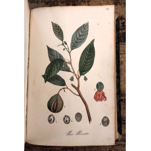 Prima edizione di questo straordinario e importante apparato iconografico torinese, corredato da 600 tavole fuori testo, eseguite in litografia e acquerellate a mano all'epoca, le quali illustrano la flora medico farmaceutica, suddivisa per famiglie botaniche.