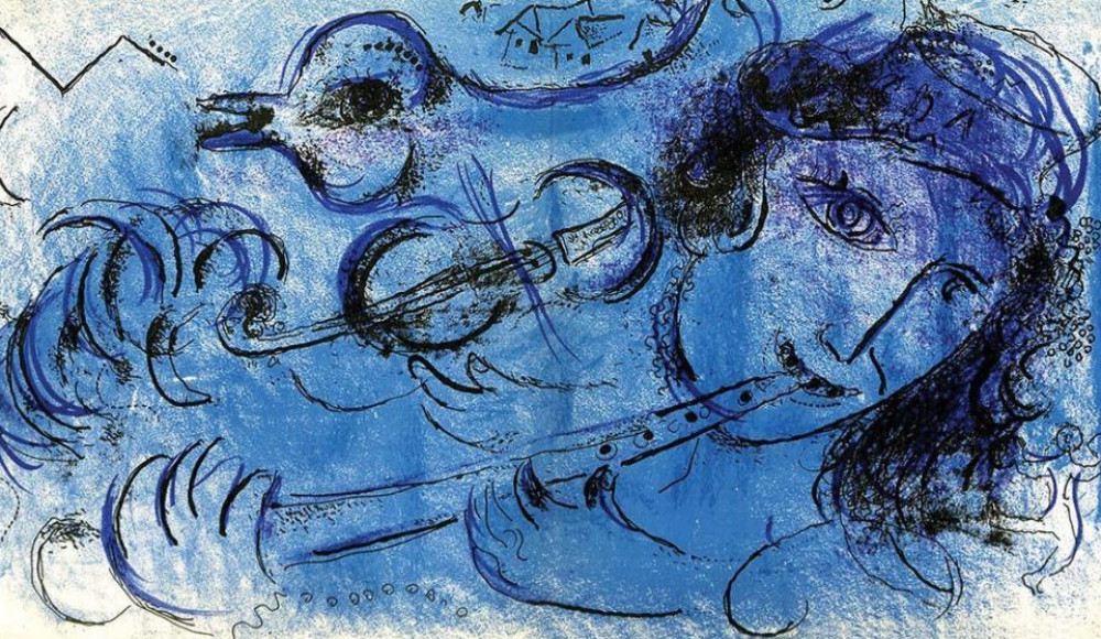 Chagall, Marc. Le joueur de flute. Parigi, Mourlot, 1957.
