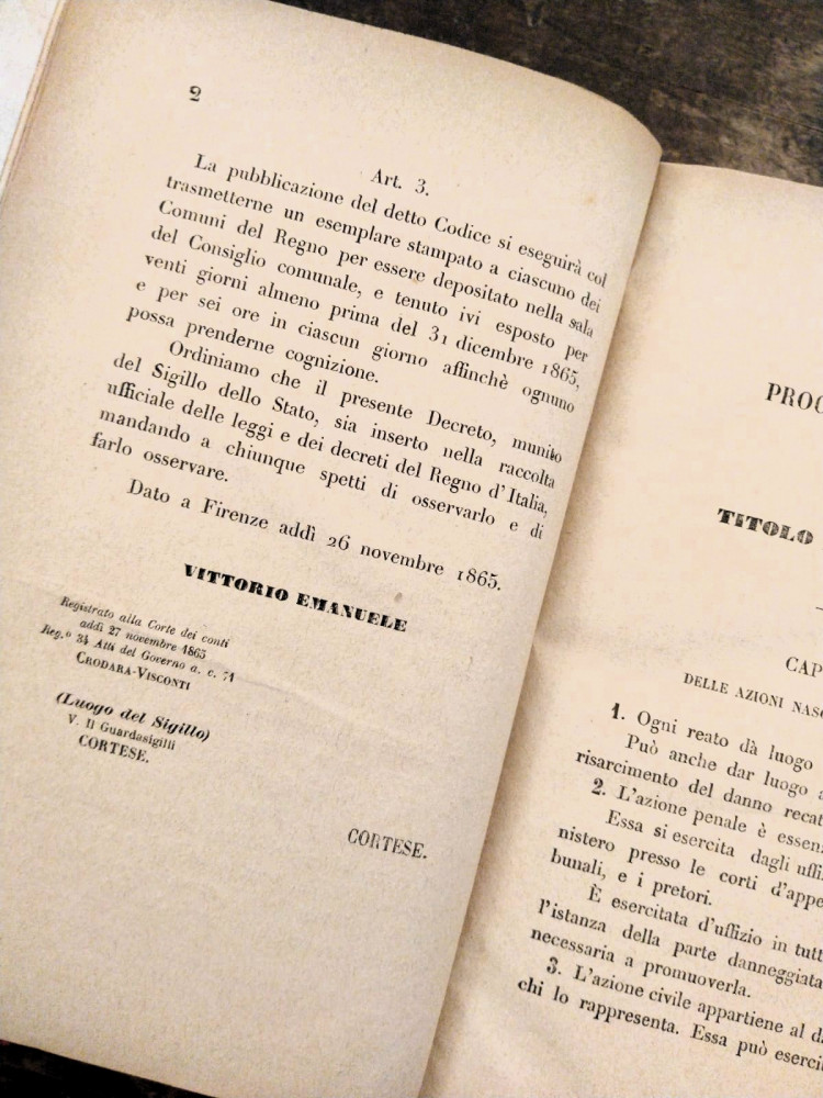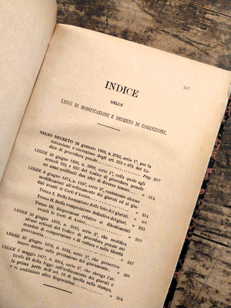 Codice di procedura penale del Regno d’Italia. Roma, Regia Tipografia, 1882.