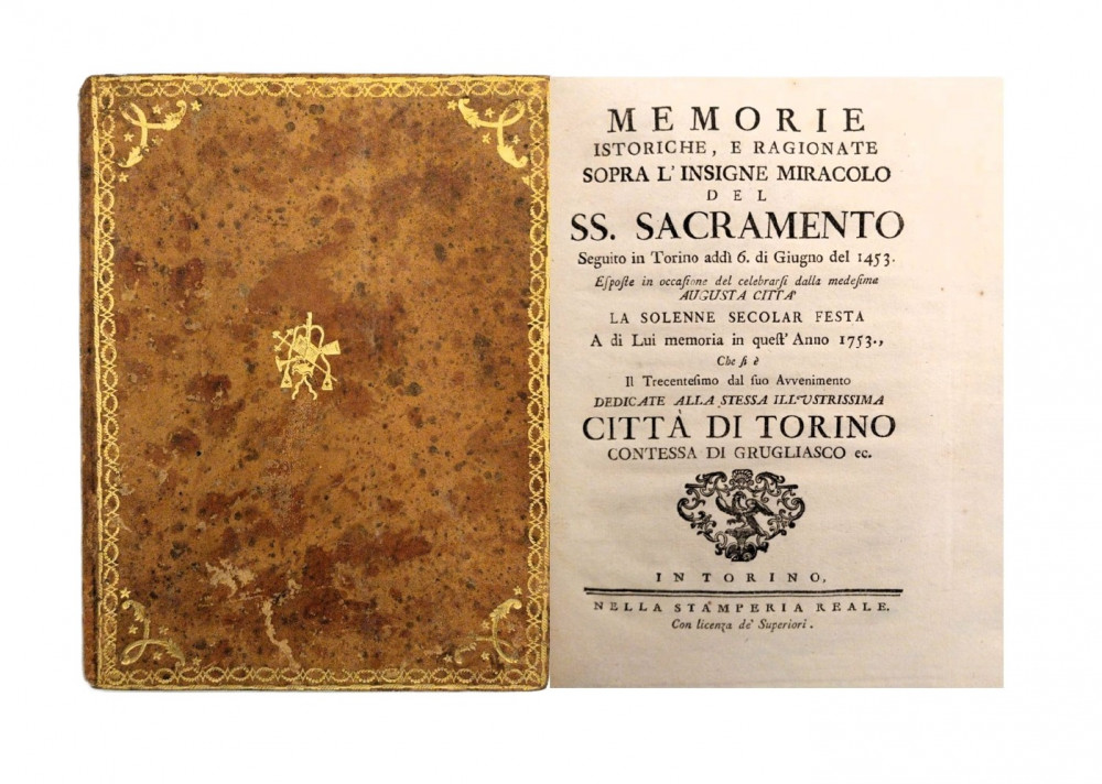 Colombo, Giovanni Angelo. Memorie istoriche, e ragionate sopra l’Insigne Miracolo del SS. Sacramento. Seguito in Torino addì 6 di giugno del 1453. Torino, Stamperia Reale, 1753.