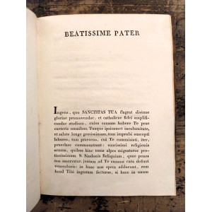 L'esemplare è reso unico in quanto possiede la tavola posta in antiporta e la dedica in latino composta da 2 cc. al Pontefice Pio VII, mancante in tutti gli esemplari recensiti.