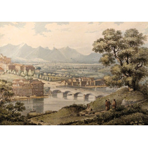 Disegni - Fryer, Edward. Due vedute della città di Torino. Londra, 1823.