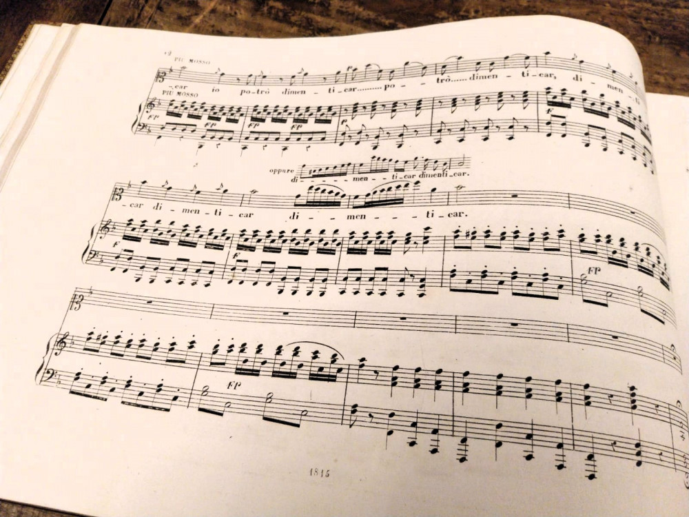 Spartito musicale dell'opera Rosmonda d'Inghilterra, opera in due atti del compositore italiano Gaetano Donizetti, appartenuto alla cantante lirica modenese Marianna Brighenti.