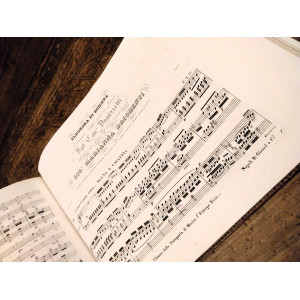 Perfetta conservazione dello spartito musicale con un'importante legatura monogrammata.