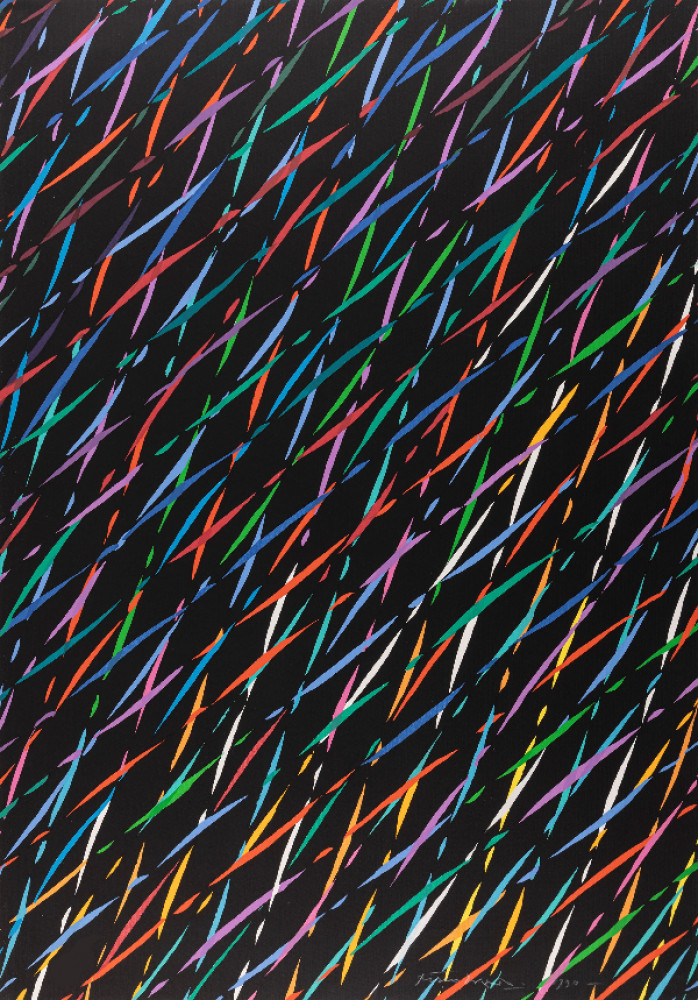 Serigrafia originale a ventidue colori, firmata, datata e numerata (mm 700 x 1000 il foglio).