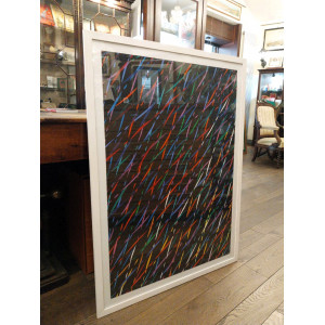 Dorazio si affida a un reticolo di strutture cromatiche sovrapposte che vanno a reinventare lo spazio, una tessitura composta da linee orizzontali, verticali e diagonali. Le linee multicolori percorrono in modo da portare lo sguardo sia in profondità che a seguire il percorso parallelo dei moti cromatici.