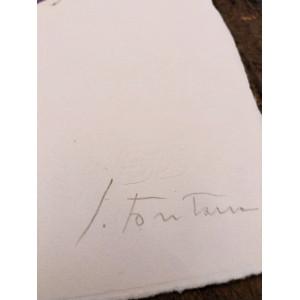 Importante documento del maestro, reso interessante per l'autentica firmata dall'editore Teodorani sulla propria carta intestata, datata 5 ottobre 1989, controfirmato al verso dal gallerista Beppe Pietra di Pavia in data 19 marzo 1990.