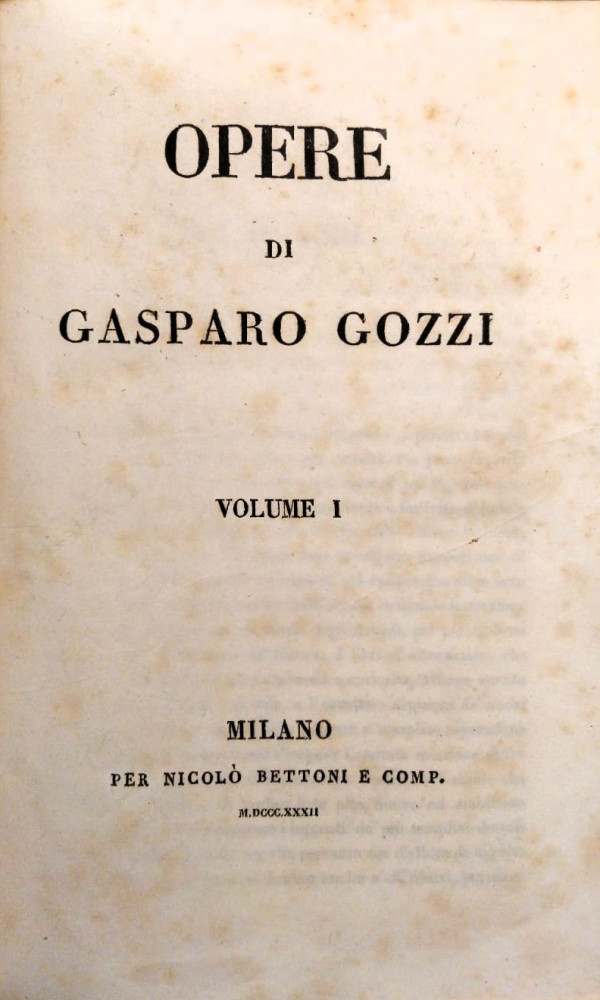 Gozzi, Gasparo. Opere. Milano, Nicolò Bettoni & C., 1832.