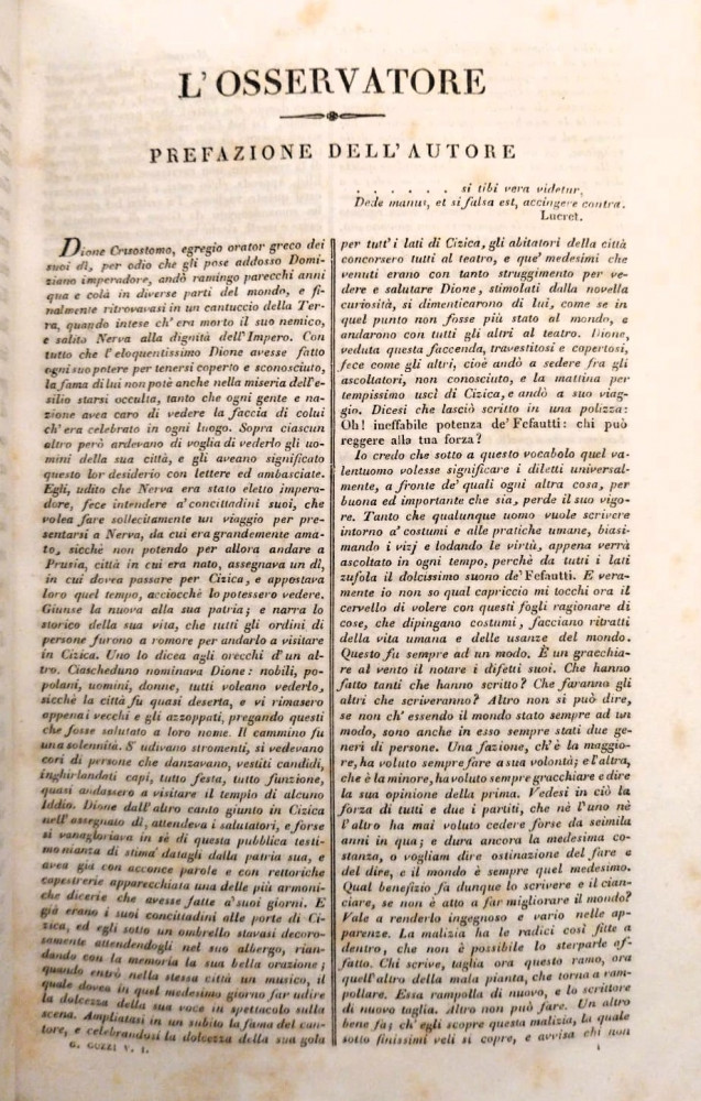 Interessante opera dello scrittore e critico italiano Gasparo Gozzi (*Venezia 1713 - †Padova 1786).