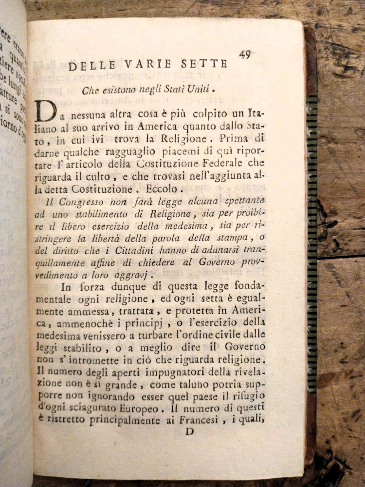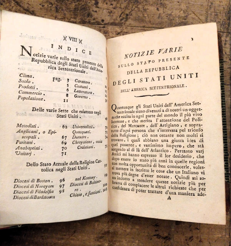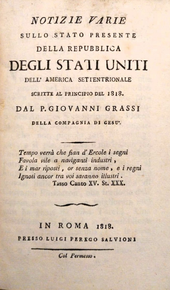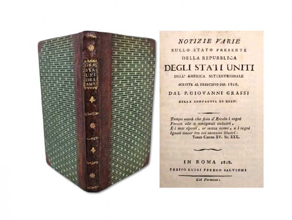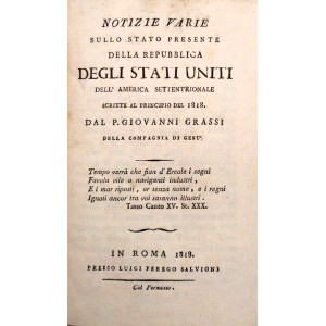 Grassi, Giovanni Antonio. Notizie varie sullo stato presente della Repubblica degli Stati Uniti dell’America Settentrionale scritte al principio del 1818. Roma, Luigi Perego Salvioni, 1818.