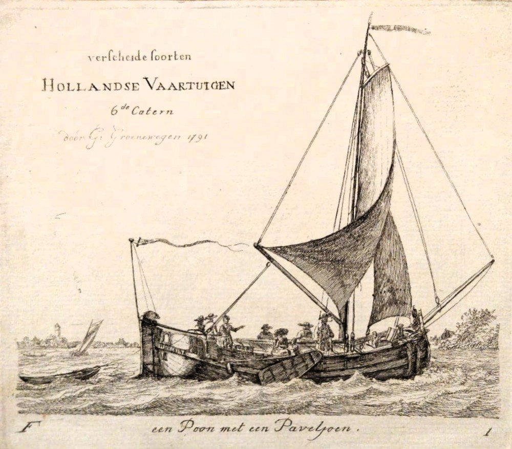 Imbarcazione - Een poon met een Paviljoen. Rotterdam, Gerrit Groenewegen, 1789-1791.