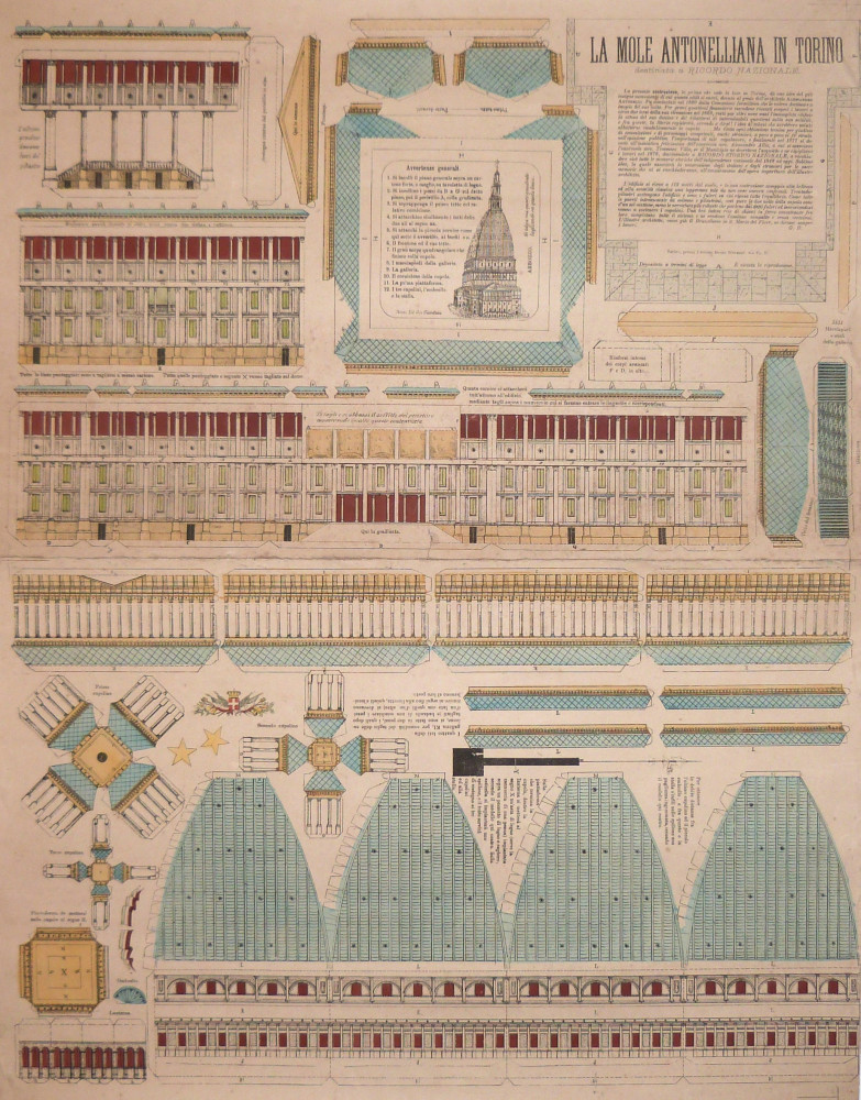 Interessante foglio destinato ad essere ritagliato in modo tale da costruire un modellino della Mole Antonelliana.