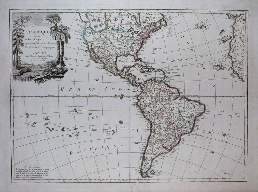 L’Amerique divisée en ses principaux Etats assujettie aux observations astronomique. Venezia, Remondini, 1784.