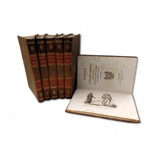 Prima edizione collettiva delle Opere, a cura di Niccolò Tommaseo (per i primi 3 tomi), completa delle 6 tavole, per lo più mancanti e generalmente non citate dai bibliografi (come precisa Hoepli 211).