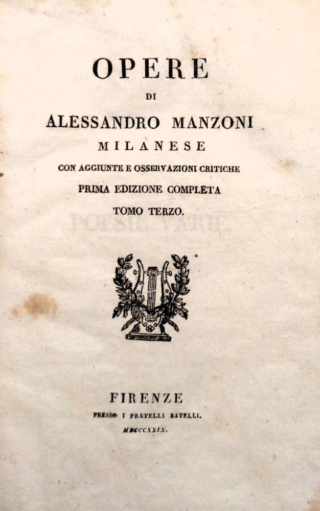 Manzoni, Alessandro. Opere. Con aggiunte e osservazioni critiche. Firenze, presso i Fratelli Batelli, 1828-1829.