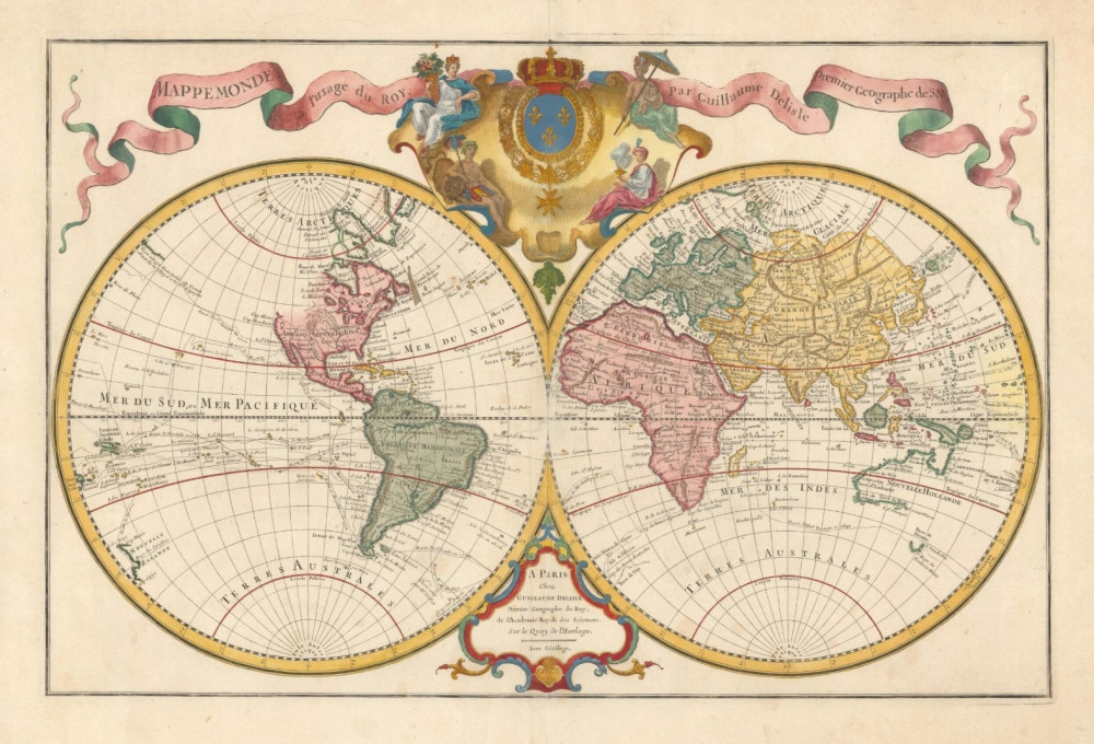 Mappemonde à l'usage du Roy. Parigi, Guillaume De L'Ilse, 1720.