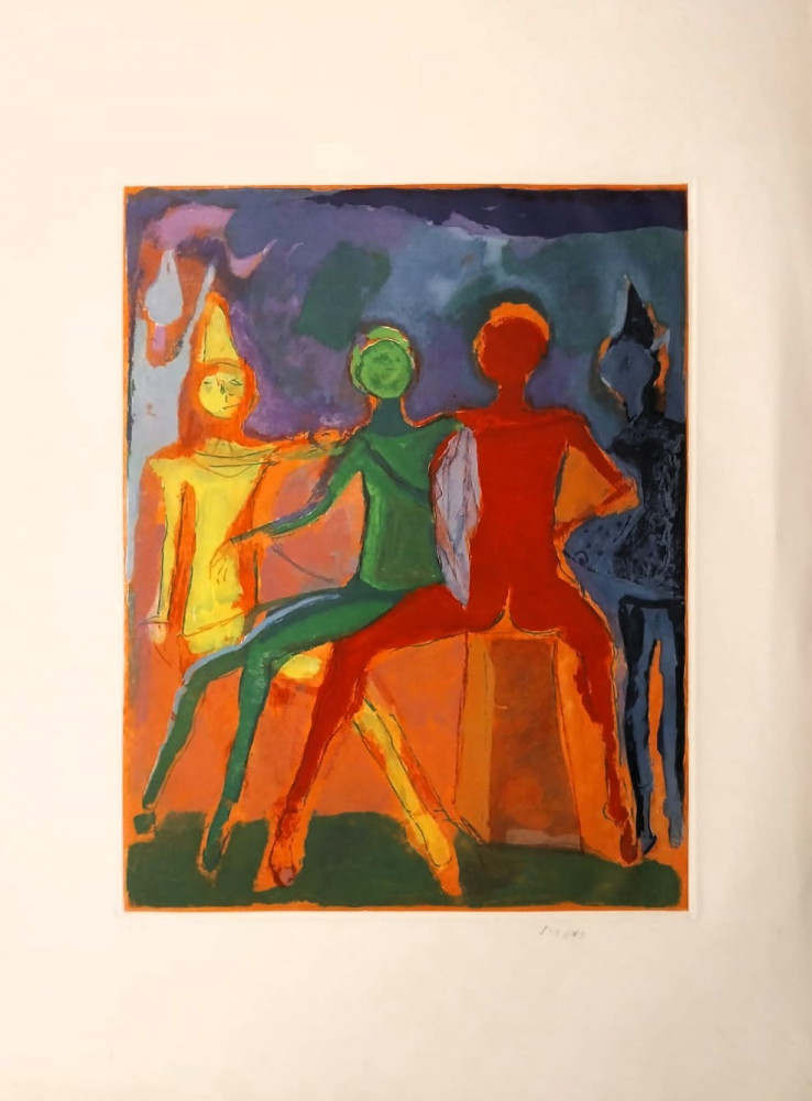 Marino Marini (*Pistoia 1901 - †Viareggio 1980) inizia a interessarsi all’acquaforte già all’Accademia di Firenze nei primi anni ’20, mostrando fin da subito sicurezza del segno che contraddistingue il suo tratto. Ma è in Svizzera, nei primi anni ’40, rifugiato durante la guerra, che inizia a lavorare alla litografia dove si dimostra capace ad ottenere risultati autonomi e sorprendenti. Le linee delle sue composizioni si spezzano, i contorni si stilizzano, il segno si deforma.