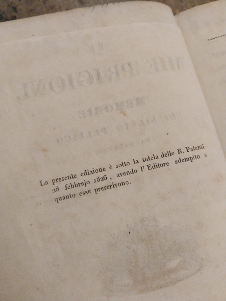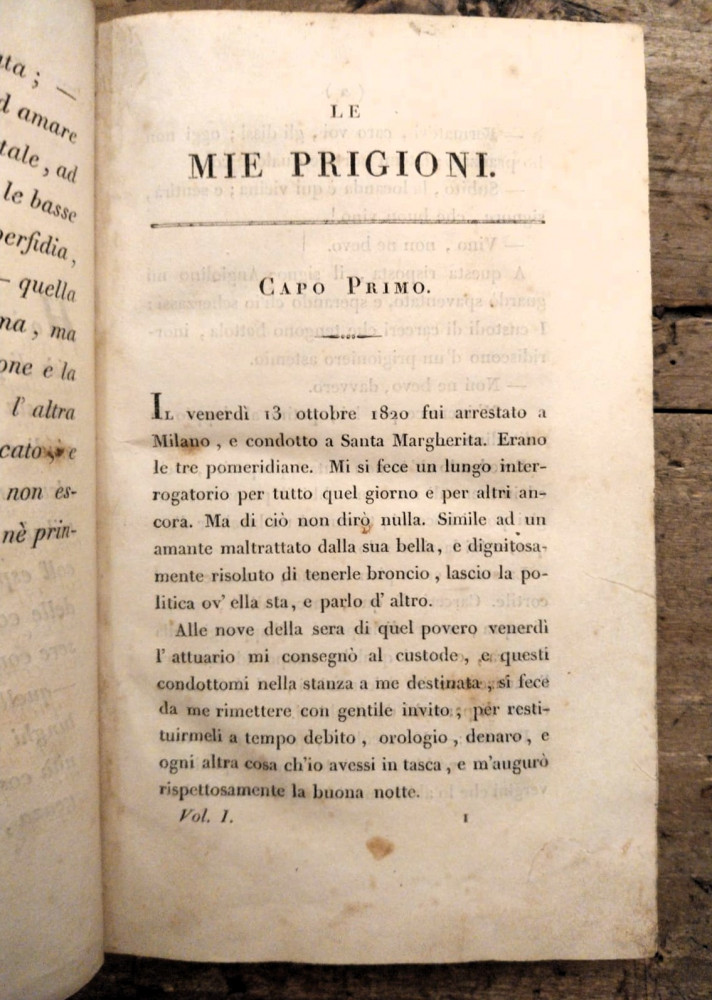 Pellico, Silvio. Le mie prigioni. Torino, Giuseppe Bocca, 1832.