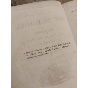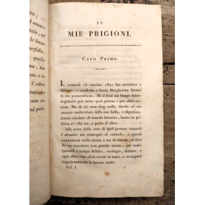Prima edizione di una celebre opera del Risorgimento italiano. "Le mie prigioni" si impone, per l’immediato successo e l’enorme risonanza, come un caso letterario eccezionale. Con gli anni il moltiplicarsi delle edizioni e delle traduzioni ne fecero il libro italiano più conosciuto e letto nell’Europa dell’Ottocento, dopo "I promessi sposi".