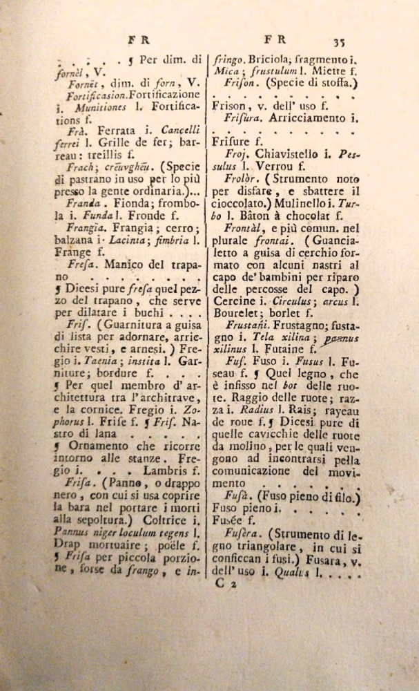 Pipino, Maurizio. Vocabolario Piemontese. Torino, Reale Stamparia, 1783.