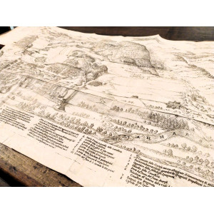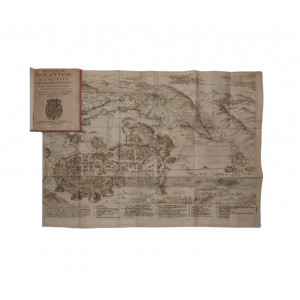 Preziosa raccolta di quattro placchette sugli avvenimenti legati alla prima guerra per la successione del Monferrato, arricchita da una pianta topografica della città di Asti di estrema rarità, assediata durante il 1615. La presente tavola è stata riscontrata solamente presso l’Archivio di Stato di Torino, come cita la fonte consultata [Torino: Archivio di Stato, Finanze, Tipi e Disegni, sez. II, n. 970 bis.].