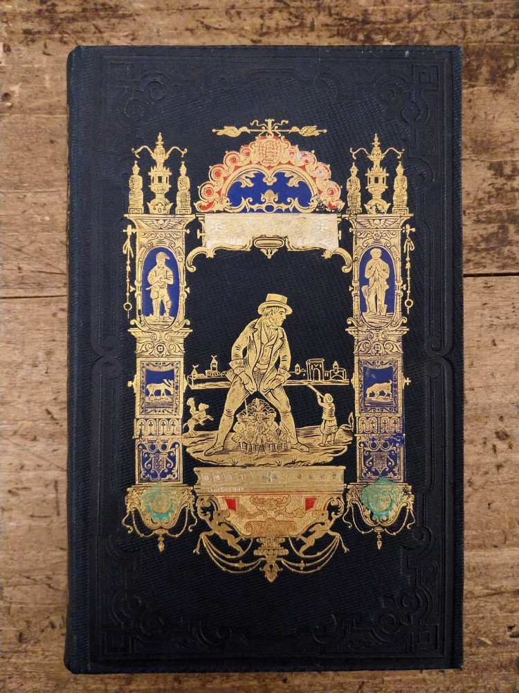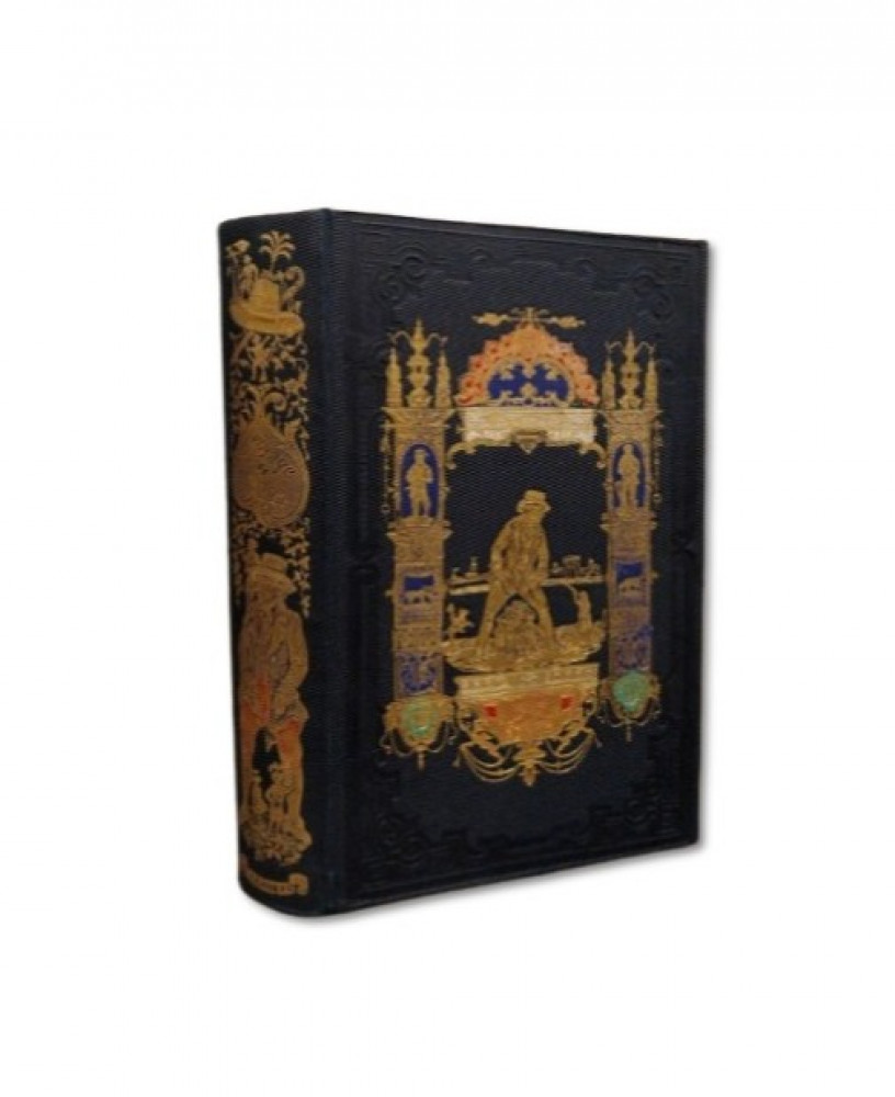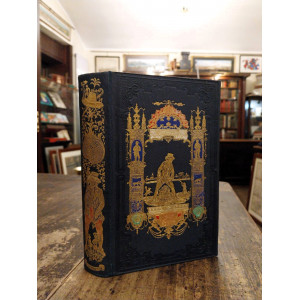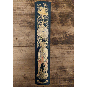 Legatura editoriale di lusso in tela percallina blu notte, illustrata con titoli ed elementi decorativi impressi in oro sul piatto anteriore e al dorso, sguardie giallo paglierino, tagli dorati.