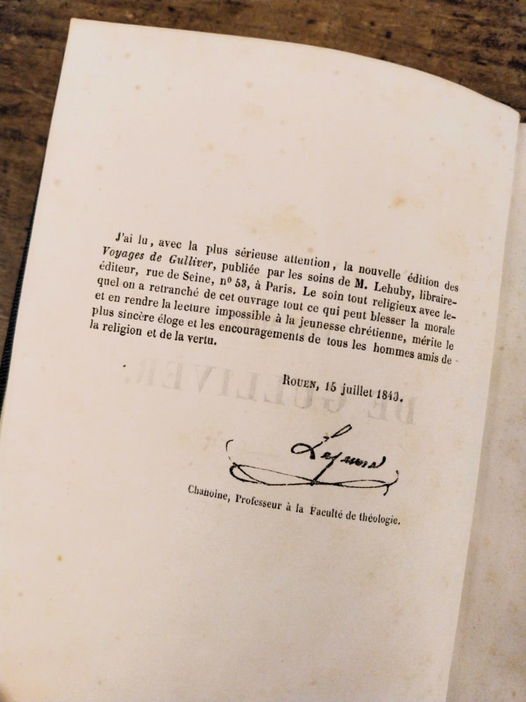 Swift, Jonathan. Voyages de Gulliver dans les Contrées Lontaines. Parigi, Librairie de l'Enfance et de la Jeunesse P. C. Lehuby, 1843.
